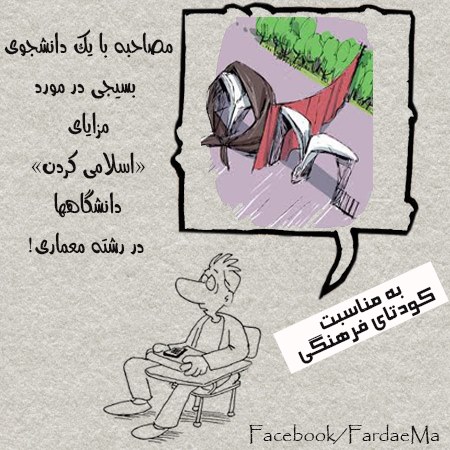 مصاحبه با يك دانشجوي معماري ولايت مدار به مناسبت سالگرد كودتاي فرهنگي – شما رشته تون چيه؟ دانشجو: معماري ميخونيم. – بله چقدر خوب! ميدونيد كه امام هم معماري خونده بود. بخاطر همين بهش ميگن معمار جمهوري اسلامي. خوب از شوخي گذشته نظرتون راجع به طرح اسلامي كردنِ دانشگاه چيه؟ دانشجو: والله اين طرح باعث شده كه ما از فضاي صرفا تئوريك بيرون بيايم و تبديل به معمارانِ كار آزموده بشيم. – جدي؟ چي جوري؟ دانشجو: هيچي ديگه. از صبح تا شب به عنوانِ كار عملي ميايم ديوار تفكيك جنسيتي ميسازيم. خوشبختانه انواع و اقسام ديوارها هم اينجا هست و ميتونيم كامل تجربه كسب كنيم. تو بوفه پارتيشن كشيديم. تو آمفي تئاتر ديوارِ پيش ساخته گذاشتيم. الآن هم داريم تو محوطة سبزِ دانشگاه يه ديوار آجري دِبش درست مي كنيم. – شما قبل از ورود به دانشگاه هم سابقة كار معماري داشتيد؟ دانشجو: جان؟!…. قبل از دانشگاه؟ … نه قبل از دانشگاه ديپلمات بود. -جدي؟ كدوم كشور؟ دانشجو: والله ديپلماتِ ما كشوري نبود. ديپلم گرفته بوديم همينجوري مات مونده بوديم.