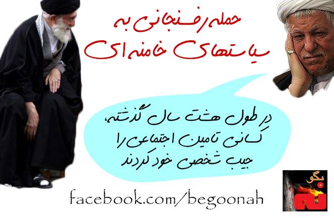 رفسنجاني مجددا سياستهاي خامنه اي طي 8 سال دوران احمدي نژاد را به باد حمله گرفت و گفت: «ضربه اي که در طول هشت سال گذشته، تامين اجتماعي خورد، اين بود که کساني آن را جيب شخصي خود کرده بودند و اين ظلمي به نظام و نيروهاي کارگري بود».
