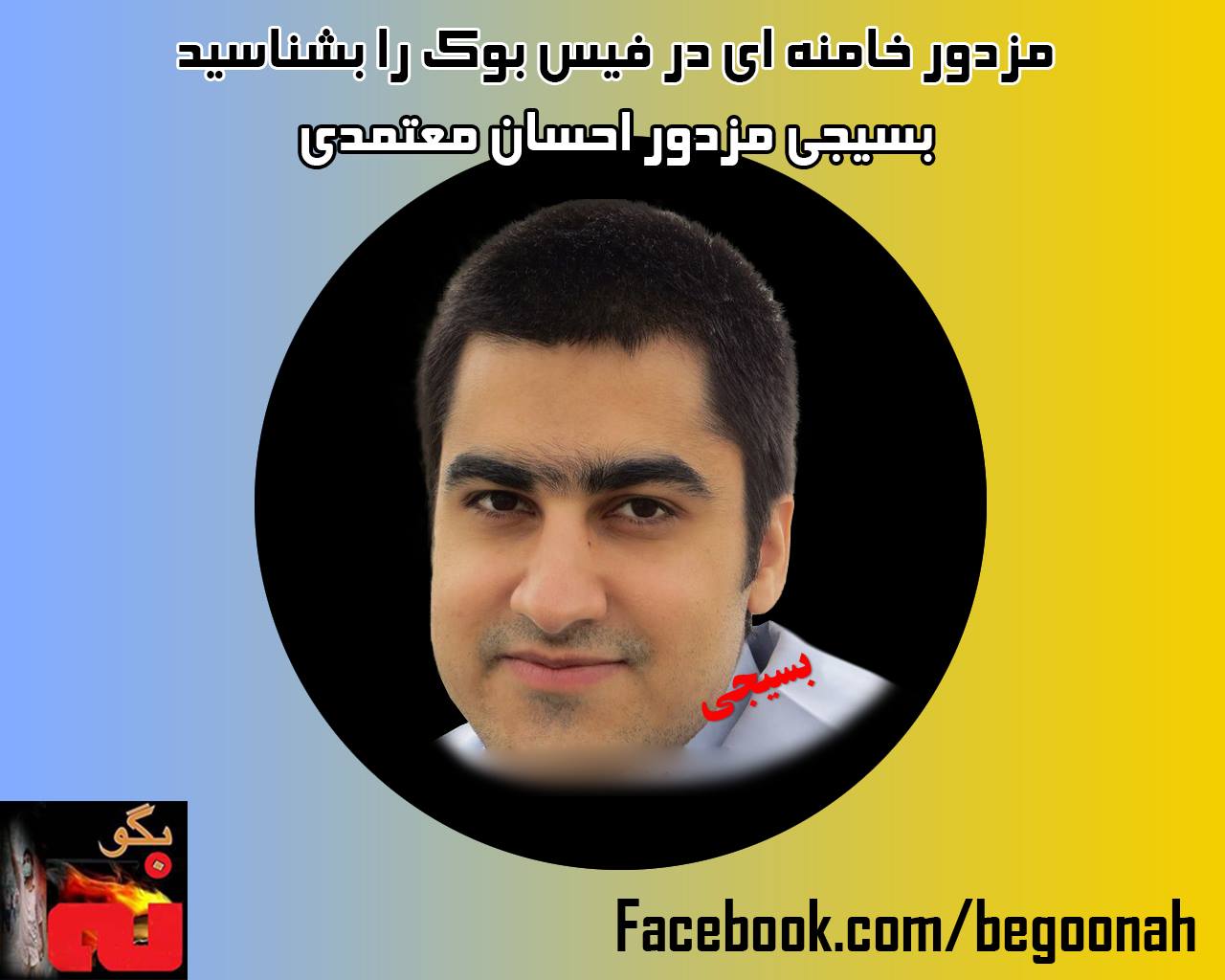 گالری فیلم و تصویر مزدور خامنه ای در فیس بوک را بشناسيد. مزدور احسان معتمدی که در فیس بوک برای خامنه ای مزدوری و به مخالفین حمله می کند. برگرفته از آژانس ایران خبر Date: مِی 1, 2014Author: begoonah 0 دیدگاه اشتراکگذاری این:بیشتر برای اشتراکگذاشتن فیسبوک خود کلیک کنید (در پنجرۀ تازه باز میشود) فیسبوک اشتراک گذاشتن توسط اس ام اس (در پنجرۀ تازه باز میشود) X برای چاپ کردن کلیک کنید (در پنجرۀ تازه باز میشود) چاپ برای اشتراکگذاری روی Telegram کلیک کنید (در پنجرۀ تازه باز میشود) تلگرام برای اشتراکگذاری روی WhatsApp کلیک کنید (در پنجرۀ تازه باز میشود) واتساپ