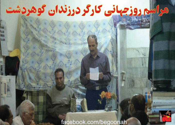 گالری فیلم و تصویر مراسم روز جهانی کارگر در زندان گوهر دشت Date: مِی 3, 2014Author: begoonah 0 دیدگاه عکس زندانی سیاسی شاهرخ زمانی در حال قرائت مقاله در مراسم روز جهانی کارگر ۹۳ در سالن ۱۲ بند ۴ زندان گوهر دشت (سالن زندانیان سیاسی) اشتراکگذاری این:بیشتر برای اشتراکگذاشتن فیسبوک خود کلیک کنید (در پنجرۀ تازه باز میشود) فیسبوک اشتراک گذاشتن توسط اس ام اس (در پنجرۀ تازه باز میشود) X برای چاپ کردن کلیک کنید (در پنجرۀ تازه باز میشود) چاپ برای اشتراکگذاری روی Telegram کلیک کنید (در پنجرۀ تازه باز میشود) تلگرام برای اشتراکگذاری روی WhatsApp کلیک کنید (در پنجرۀ تازه باز میشود) واتساپ