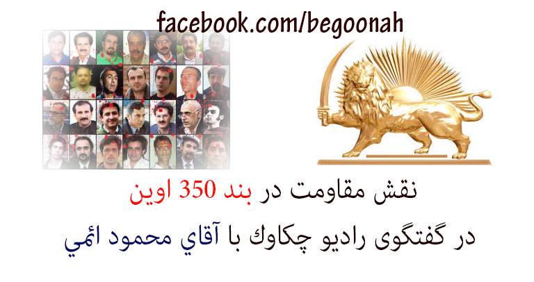 شنبه شب 6 ارديبهشت آقاي محمود ائمي از اعضاي شوراي ملي مقاومت ايران در گفتگو با راديو چكاوك در مورد نقش مقاومت در برابر دژخيمان اوين در جريان سركوب زندانيان بند350 اوين داشتند كه قسمت هايي از آن را از گفتار به نوشتارتبديل در آمده كه با كمي ويراستاري آن را در زير ميخوانيد.