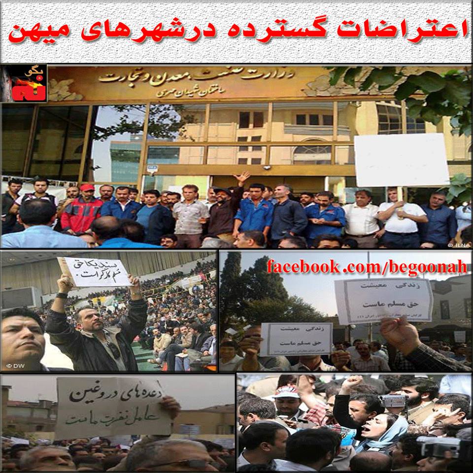 به گزارش دريافتی از خرمشهر روز يک شنبه ۲۲ ارديبهشت کارگران شرکت صابون سازی اين شهر تجمع کردند و خواهان مطالبات عقب افتاده خود شدند. دو کارگر محروم اين شرکت تنها به دليل عدم توانايی خريد دارو و درمان اخيراً جان سپردند. بيش از ۱۵ ماه است که هيچ اعتباری در دفتر کارگران واريز نمی شود. در سنندج روز چهارشنبه ۱۷ ارديبهشت کارگران کارخانه سهند آذر در اعتراض پرداخت نشدن پنج ماه حقوق عقب افتاده تجمع کردند. تجمع کنندگان همچنين به اخراج ۳۰ نفر از کارگران اين کارخانه اعتراض کردند. بنا به خبر ديگری از سنندج کارگران پيمانکار شرکت ساختمانی عمرانی کتوش در اعتراض به پرداخت نشدن سه ماه حقوق عقب افتاده تجمع کردند. در جيرفت جمعی از کشاورزان در اعتراض به پايين بودن قيمت محصولات کشاورزی در مقابل فرمانداری رژيم تجمع کردند و محصولات و ميوه های خود را بر روی زمين ريختند. در اصفهان روز پنجشنبه ۱۸خرداد ساکنان خيابان بوستان سعدی که در منطقه پل فلزی اصفهان واقع شده است عليه کارگزاران رژيم در شهرداری اعتراض کردند. نابسامانی وضعيت اين منطقه و نبودن خدمات عمومی علت اعتراض مردم بود. بازنشستگان شرکت ذوب آهن اصفهان روز يکشنبه ۲۱ارديبهشت در دفتر کانون بازنشستگان اين شرکت تجمع کردند و به پرداخت نشدن حقوق عقب افتاده اعتراض کردند. اعتصاب کاميونداران بهبهان در اعتراض به افزايش نرخ گازوييل ادامه يافته و اعتصابيون از بارگيری خودداری می کنند. همچنین دانشجويان رشته فيزيولوژی دانشگاه علوم پزشکی دانشگاه ملی در تهران روز چهارشنبه ۱۸ ارديبهشت در اعتراض به حذف رشته خود در محل دانشکده تحصن کردند و خواهان ادامه تحصيل در اين رشته شدند. دانشجويان دانشگاه آزاد کرمانشاه در اعتراض به گردانندگان دانشگاه و وضعيت نابسامان خدماتی تجمع کردند. کارگزاران رژيم در دانشگاه در وحشت از گسترش اين حرکت اعتراضی به خواسته های دانشجويان تن دادند. به گزارش سایت حکومتی خبرنگاران ، یک کارگزار حکومتی دلائل مرگ بیش از یک میلیون ماهی در دریاچه فشافویه را اعلام کرد. وی از جمله گفت: ”با توجه به اینکه سطح آب سد پائین آمده بود، بنابراین کمبود اکسیژن اصلی ترین عامل مرگ شناخته شده است“. وی در ادامه می افزاید: ”مدیریت ضعیف، بهره بردار بيش از حد و رعایت نکردن ظرفیت اکوسیستم و میزان تخم ریزی مزید برعلت شده و زمانی که آب دریاچه ۲۰۰ هکتار باشد، گنجایش پرورش۲ هزار ماهی را دارد، اما زمانی که آب سطح دریاچه به ۵۰ هکتار کاهش یافته برای ۲ میلیون قطعه ماهی تخم ریزی شده و این حادثه را رقم زده است“. به گزارش خبرگزاری حکومتی آریا در حالي که تنها دو هفته از اعلام نرخ هاي جديد بنزين و ديگر حامل هاي سوخت مي گذرد ،سخنگوي دولت آخوندی از بررسي مجدد جهت افزايش قيمت بنزين خبرداده است.