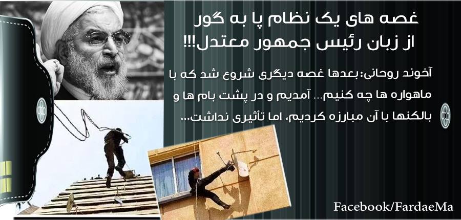 آخوند روحانی سپس به شکست رژيم در جنگ با ماهواره نيز اعتراف کرد و گفت: «بعدها غصه ديگری شروع شد که با ماهواره ها چه کنيم… آمديم و در پشت بام ها و بالکنها با آن مبارزه کرديم، اما تأثيری نداشت».