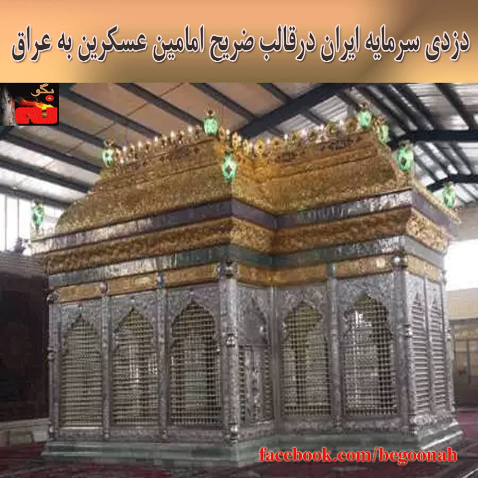 گالری فیلم و تصویر دزدی آشکار سرمایه ایران در قالب ضریح امامین عسکریین به عراق ..ساخت یک ضریح با۷۰کیلوگرم طلا و۴۵۰ کیلوگرم نقره برای سامرادرعراق Date: مِی 19, 2014Author: begoonah 0 دیدگاه 0.000000 0.000000 ۰ اشتراکگذاری این:بیشتر به اشتراک گذاشتن در فیسبوک (در پنجرۀ تازه باز میشود) فیسبوک اشتراکگذاری در X (در پنجرۀ تازه باز میشود) X چاپ (در پنجرۀ تازه باز میشود) چاپ اشتراکگذاری در تلگرام (در پنجرۀ تازه باز میشود) تلگرام اشتراکگذاری در واتساپ (در پنجرۀ تازه باز میشود) واتساپ