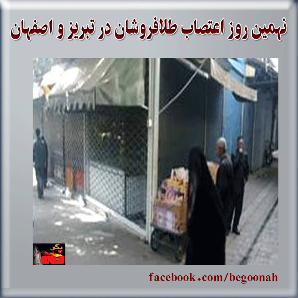 اعتصاب بازار طلافروشان تبریز برای نهمین روز متوالی ادامه یافت. این اعتصاب از روز شنبه ۲۷اردیبهشت ماه و در اعتراض به اخاذی مالیاتی و عوارض گمرکی شروع شده است.