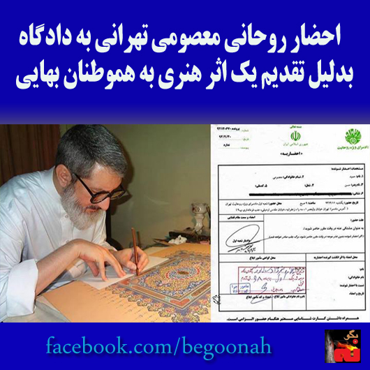 بنا به گزارش رسانه های خبری آیتالله عبدالحمید معصومی تهرانی در پی تقدیم یک اثر هنری در قالب تابلویی خوشنویسی و تذهیب به هموطنان بهایی به دادگاه ویژه روحانیت تهران احضار شد