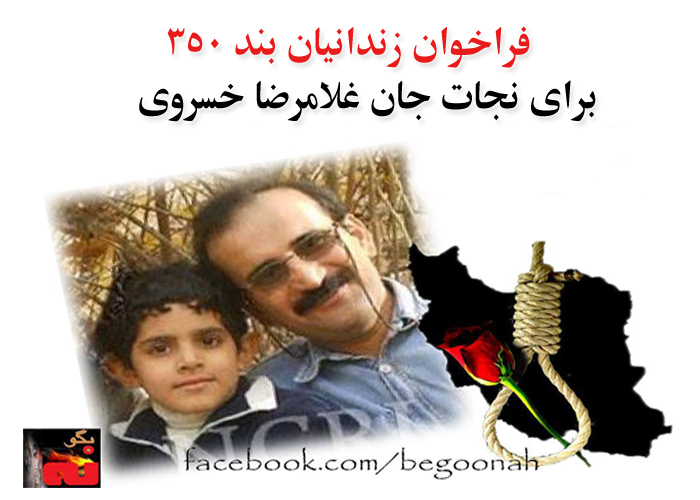 فعالان در تبعید: گروهی از زندانیان بند ۳۵۰طی بیانیه ای با ابراز نگرانی از اجرای قریب الوقوع حکم اعدام غلامرضا خسروی، خواهان کمک و موضعگیری مردم شریف ایران و کلیه نهادهای حقوق بشری بین المللی و داخلی، در تلاش برای توقف این حکم شدند.
