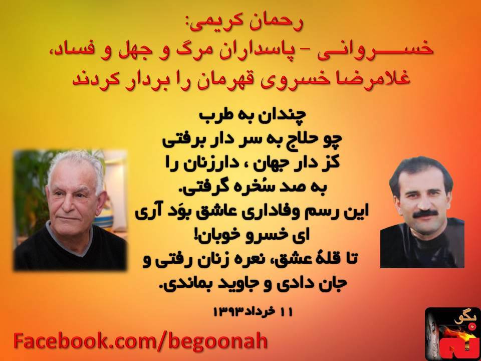 گالری فیلم و تصویر شعری از شاعررحمان کریمی برای شهید غلامرضا خسروی Date: جون 1, 2014Author: begoonah 0 دیدگاه 0.000000 0.000000 ۰ اشتراکگذاری این:بیشتر برای اشتراکگذاشتن فیسبوک خود کلیک کنید (در پنجرۀ تازه باز میشود) فیسبوک اشتراک گذاشتن توسط اس ام اس (در پنجرۀ تازه باز میشود) X برای چاپ کردن کلیک کنید (در پنجرۀ تازه باز میشود) چاپ برای اشتراکگذاری روی Telegram کلیک کنید (در پنجرۀ تازه باز میشود) تلگرام برای اشتراکگذاری روی WhatsApp کلیک کنید (در پنجرۀ تازه باز میشود) واتساپ