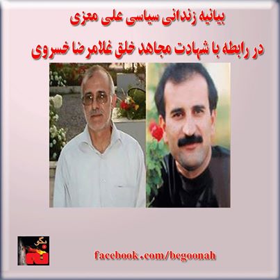 بیانیه زندانی سیاسی علی معزی در رابطه با شهادت مجاهد خلق غلامرضا خسروی