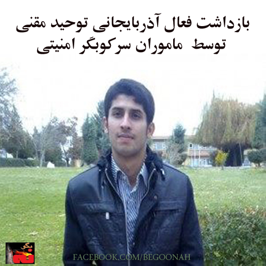 بنا به اطلاع اویان نیوز، عصر سه شنبه ۲۰خرداد۹۳ توحید مقنی فعال آذربایجانی اهل آذرشهر از سوی ماموران امنیتی بازداشت و به کلانتری یازده این شهر انتقال یافت.