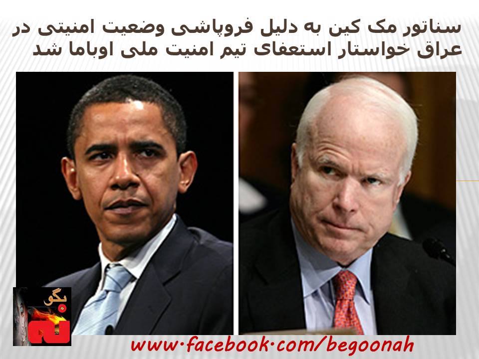 روز پنجشنبه سناتور جان مک کین از رهبران ارشد سنای آمریکا درخواست کرد تیم امنیت ملی اوباما به خاطر فروپاشی وضعیت امنیتی در عراق استعفا دهد… .