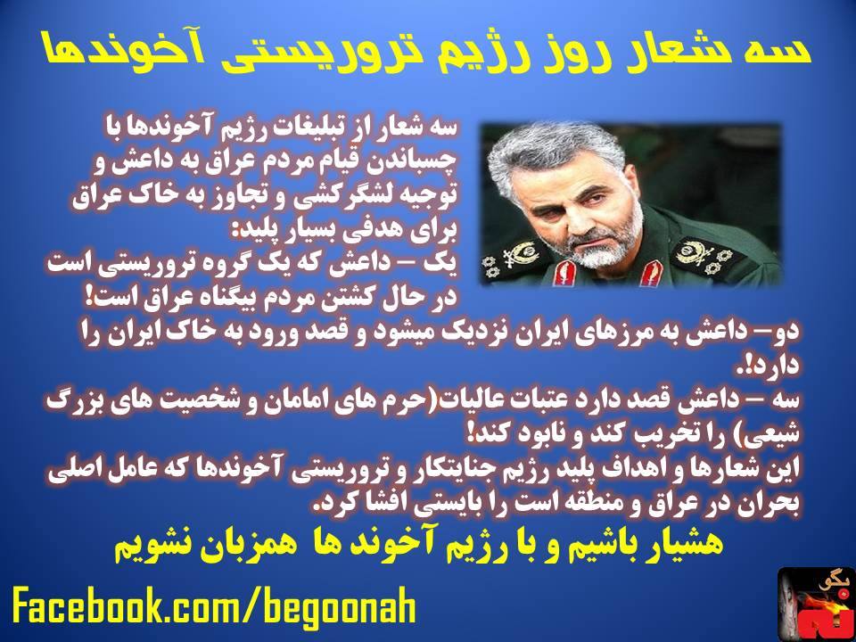 گالری فیلم و تصویر سه شعار رژیم تروریست آخوندی درموردقیام مرد م عراق Date: جون 13, 2014Author: begoonah 0 دیدگاه اشتراکگذاری این:بیشتر برای اشتراکگذاشتن فیسبوک خود کلیک کنید (در پنجرۀ تازه باز میشود) فیسبوک اشتراک گذاشتن توسط اس ام اس (در پنجرۀ تازه باز میشود) X برای چاپ کردن کلیک کنید (در پنجرۀ تازه باز میشود) چاپ برای اشتراکگذاری روی Telegram کلیک کنید (در پنجرۀ تازه باز میشود) تلگرام برای اشتراکگذاری روی WhatsApp کلیک کنید (در پنجرۀ تازه باز میشود) واتساپ