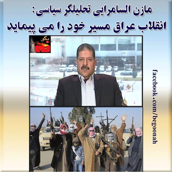 درست است که انقلاب با دیر کرد آمد ولی انشاءالله مسیرش را تا بغداد خواهد پیمود و گروه فاسد در بغداد را سرنگون خواهد کرد. از دیر باز می بایست این انقلاب می شد. شایعاتی به نام داعش می شود که درست نیست. ما می گوییم که این یک انقلاب مردمی و توده یی و عراقی خالص است که در آن تمامی گروهها و سازمانها مسلح در عراق با هم هم پیمان شده اند تا رژیم فاسد در بغداد را سرنگون کنند