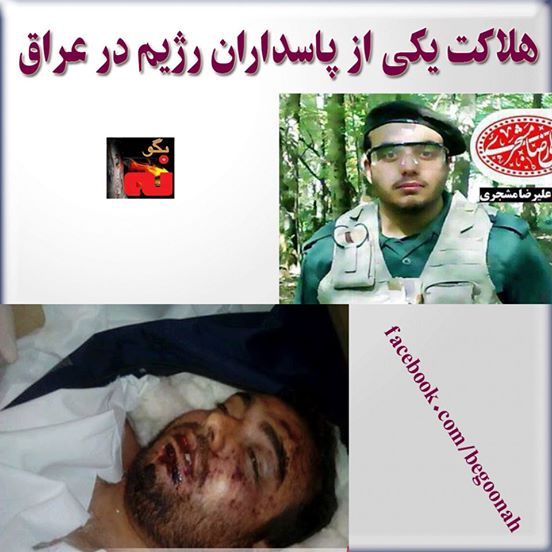 اخبار هلاكت يكي از پاسداران رژيم Date: جون 16, 2014Author: begoonah 0 دیدگاه در عراق اين پاسدار كه در رسانه هاي رژيم از وي با نام سروان عليرضا مشجري و از مدافعين حرم حضرت زينب ياد شده در اطراف سامراء در عراق به هلاكت رسيده و جسدش پيدا شده است. #ایران # بغداد #سپاه پاسداران #بگونه اشتراکگذاری این:بیشتر برای اشتراکگذاشتن فیسبوک خود کلیک کنید (در پنجرۀ تازه باز میشود) فیسبوک اشتراک گذاشتن توسط اس ام اس (در پنجرۀ تازه باز میشود) X برای چاپ کردن کلیک کنید (در پنجرۀ تازه باز میشود) چاپ برای اشتراکگذاری روی Telegram کلیک کنید (در پنجرۀ تازه باز میشود) تلگرام برای اشتراکگذاری روی WhatsApp کلیک کنید (در پنجرۀ تازه باز میشود) واتساپ