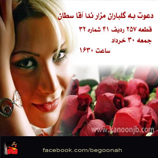 گالری فیلم و تصویر مراسم گلباران مزار ندا آقا سلطان Date: جون 17, 2014Author: begoonah 0 دیدگاه اشتراکگذاری این:بیشتر برای اشتراکگذاشتن فیسبوک خود کلیک کنید (در پنجرۀ تازه باز میشود) فیسبوک اشتراک گذاشتن توسط اس ام اس (در پنجرۀ تازه باز میشود) X برای چاپ کردن کلیک کنید (در پنجرۀ تازه باز میشود) چاپ برای اشتراکگذاری روی Telegram کلیک کنید (در پنجرۀ تازه باز میشود) تلگرام برای اشتراکگذاری روی WhatsApp کلیک کنید (در پنجرۀ تازه باز میشود) واتساپ