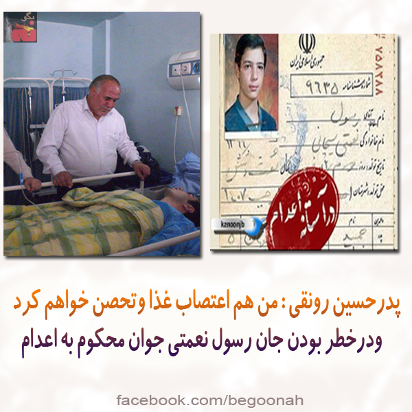 گفتنی است حسین رونقی به پدرش گفته که علاوه بر اعتصاب درمان، اعتصاب غذای خشک خواهد کرد. پدر وی نیز گفته است «اگر حسین اعتصاب کند من نیز جلوی دادستانی خواهم رفت و اعتصاب غذا و تحصن خواهم کرد»