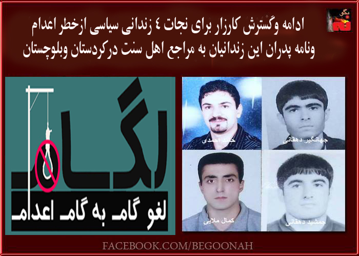 طی ۲۴ ساعت گذشته شماری از اعضای کارزار لغو گام بگام اعدام، با صدور بیانیه، یا حضور در بین خانواده چهارزندانی اهل سنت که در آستانه اعدام قرار دارند خواستار توقف اجرای حکم آنها شدند.