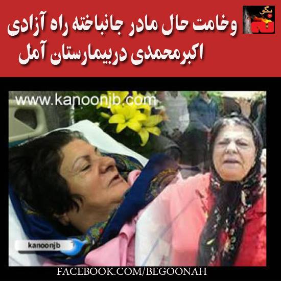 كانون حمايت از خانواده جان باختگان و بازداشتي ها اول تير ۹۳ : مادر جان باخته حوادث ۱۸ تير شهيد اكبر محمدي بعلت فشارهای وارده ای چون غم مرگ فرزندش اکبر و سپس ممنوع الخروج شدن جهت دیدار با فرزندانش در آمریکا ،دچار عارضه سکته مغزی شد و هم اینک نیز در بیمارستان امام رضای آمل در مازندران درشرایط بسیار سخت بدی در بستری بسر میبرد . اين مادر درد كشيده پیشتر از شدت غم مرگ اکبر دچار ناراحتی اعصاب شده بود و اين ناراحتی موجب تشديد بيماري دیسک کمر وي شود و در نهایت نیز چندین بار زیر تیغ جراحی رفت و تا اندازه ای سلامتی خود را باز يافت اما خبر مرگ فرزندش اكبر با لب تشنه ، فکر مادر را رها نساخته و همواره بخاطر دارد که فرزندش اکبر به هنگام اعتصاب غذای خشک ، با لب تشنه همراه با شکنجه های سخت و نیز همراه با بسته شدن دو دست و دو پا از طریق زنجیر به تخت بهداری زندان اوین برای آزادی کشور و مردم ستم دیده به شهادت رسيد. اين مادر داغديده هنگام شهادت فرزندش در حالی که گل و شیرینی بر روی مزار اکبر محمدی گذارده بود میگفت: «امروز روز عروسی فرزندم است و همه شما در جشن عروسی اکبر