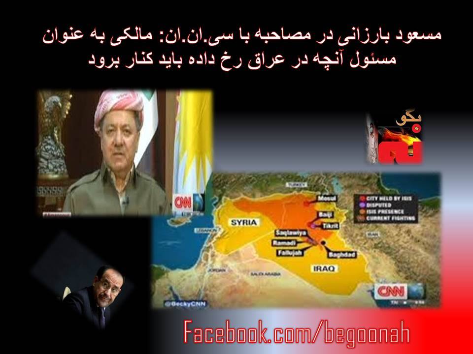 مسعود بارزانی: مالکی به عنوان مسئول آنچه در عراق رخ داده باید کنار برود