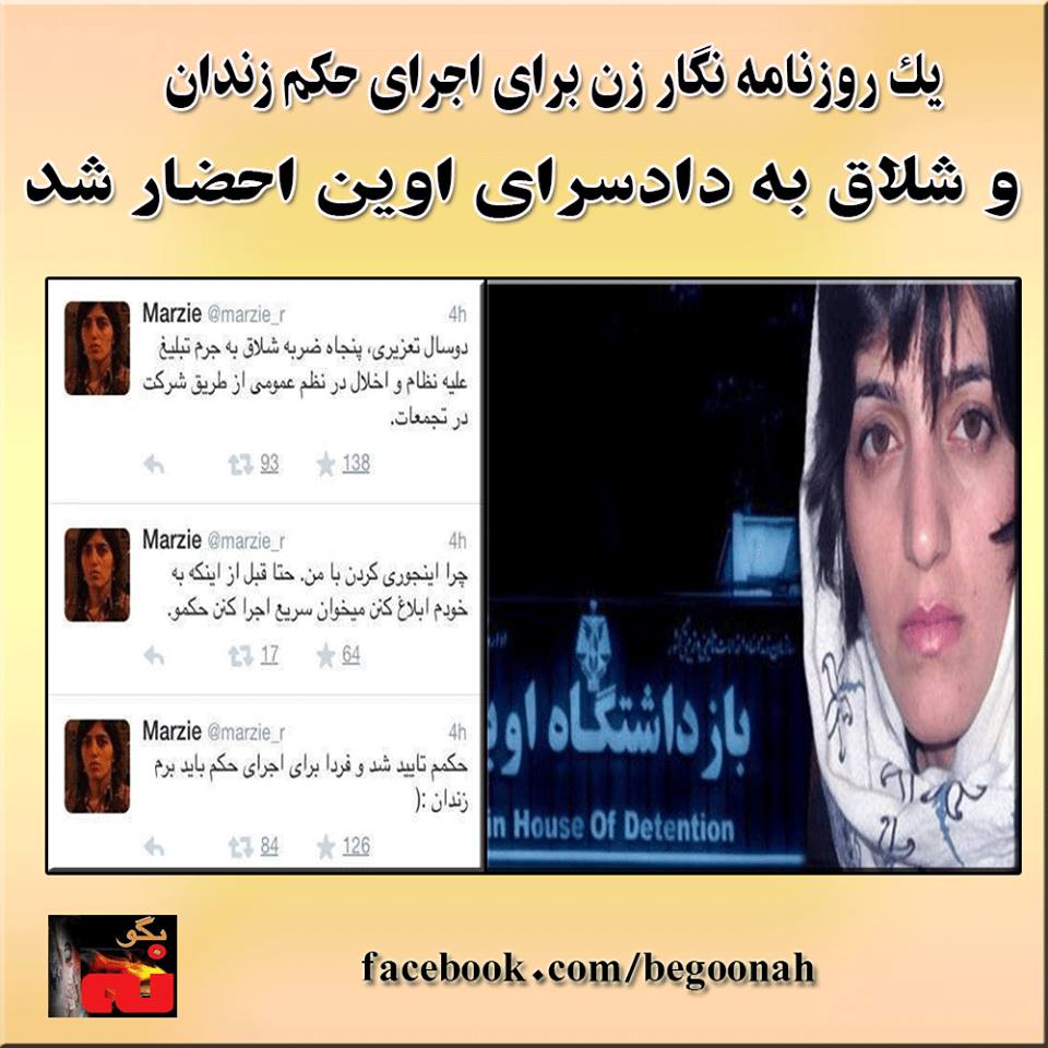 مرضیه رسولی، روزنامهنگار ایرانی، در حساب توییتر خود اعلام کرد که برای اجرای حکم دو سال حبس تعزیری و ۵۰ ضربه شلاق احضار شده است.