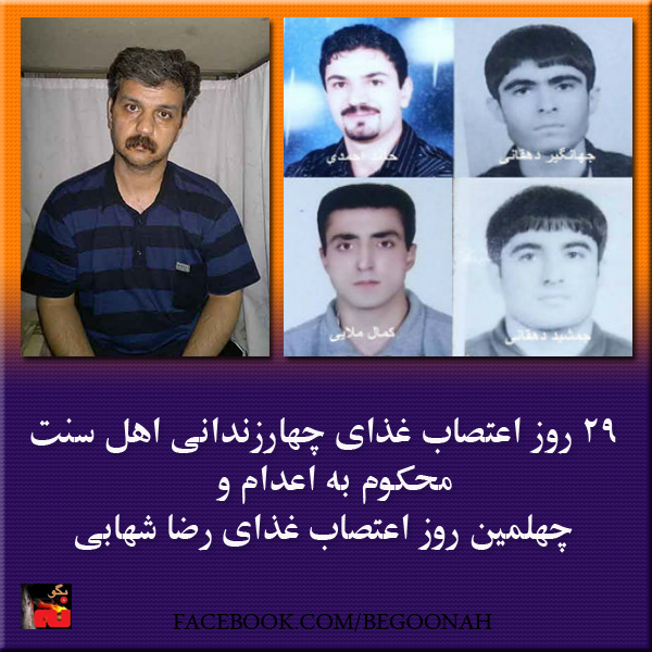 بيست و نهمين روز اعتصاب غذاي چهار زنداني سياسي محكوم به اعدام در زندان قزلحصار كرج وچهلمين روز اعتصاب غذاي زنداني سياسي رضا شهابي