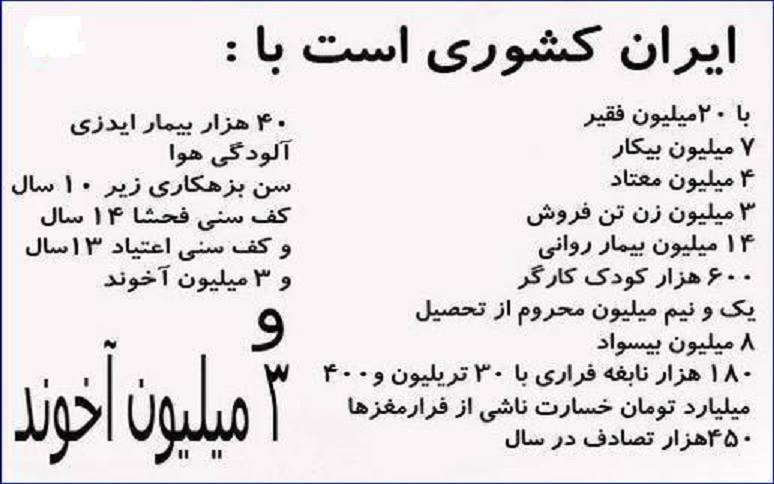 گالری فیلم و تصویر ایران کشوری تحت حاکمیت پلید آخوندی Date: ژوئیه 11, 2014Author: begoonah 0 دیدگاه اشتراکگذاری این:بیشتر برای اشتراکگذاشتن فیسبوک خود کلیک کنید (در پنجرۀ تازه باز میشود) فیسبوک اشتراک گذاشتن توسط اس ام اس (در پنجرۀ تازه باز میشود) X برای چاپ کردن کلیک کنید (در پنجرۀ تازه باز میشود) چاپ برای اشتراکگذاری روی Telegram کلیک کنید (در پنجرۀ تازه باز میشود) تلگرام برای اشتراکگذاری روی WhatsApp کلیک کنید (در پنجرۀ تازه باز میشود) واتساپ