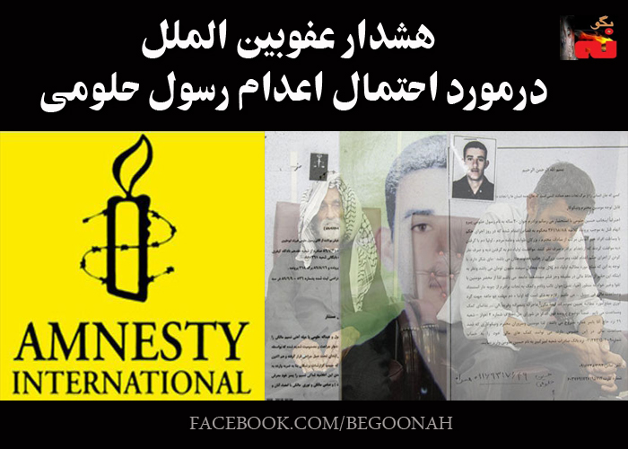 عفو بینالملل در بیانیهای که امروز منتشر شد خبر از اعدام قریب وقوع رسول حلومی داد، رسول در مهرماه سه سال پیش، در دادگاه جنایی استان خوزستان، به جرم قتل یک پسر نوجوان در نزاع به اعدام محکوم شد و سال ۲۰۱۰ حکم بدون در نظر گرفتن به سن و سال او و دفاعیاتش تایید شد، حکم قصاص او اکنون به دایره اجرای احکام اهواز فرستاده شده و ممکن است هر لحظه به اجرا گذاشته شود.