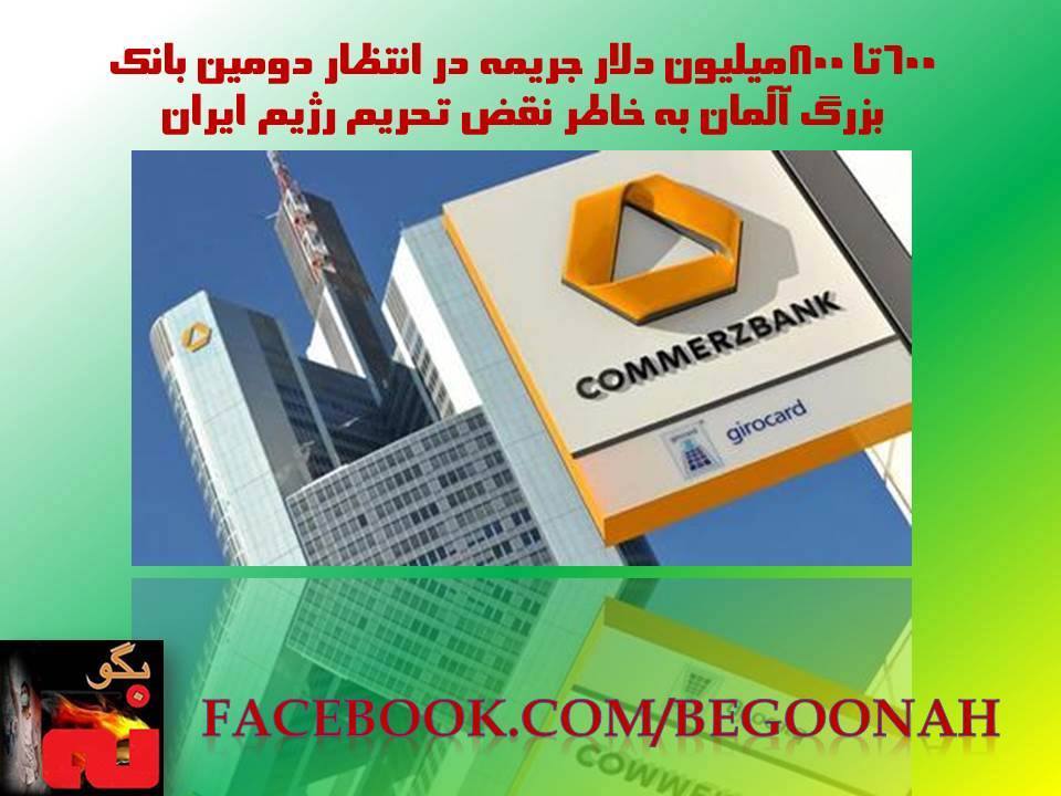 ۶۰۰تا ۸۰۰میلیون دلار جریمه در انتظار دومین بانک بزرگ آلمان به خاطر نقض تحریم رژیم ایران