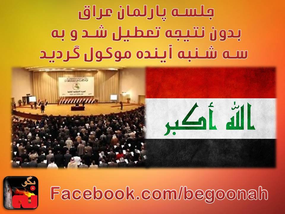 تلویزیون الجزیره گزارش داد: جلسه پارلمان عراق به علت وجود اختلاف در رابطه با رؤسای سه گانه تعطیل شد و به سه شنبه موکول شد.
