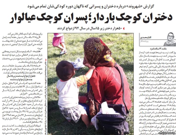 روزنامه حکومتی شهروند در گزارشی با تيتر «دختران کوچک باردار، پسران کوچک عيالوار» به بررسی ازدواج در سنين کودکی و پيامدهای آن پرداخته است. اين روزنامه ضمن گزارش ميدانی پيامدهای بارداری دخترانی که در سنين کودکی يا نوجوانی در کرج، شهر ری يا مناطقی از تهران از جمله منطقه شوش بدون دريافت خدمات بهداشتی، خود و کودکان شان دچار آسيبهای جسمی شدهاند.