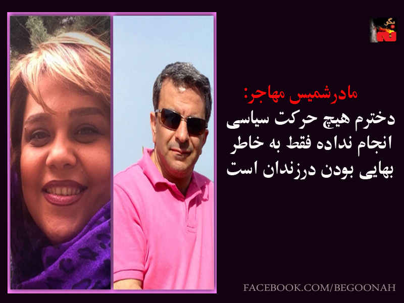 مادر شمیس مهاجر: دخترم هیچ حرکت سیاسی انجام نداده؛ فقط به خاطر بهایی بودن در زندان است