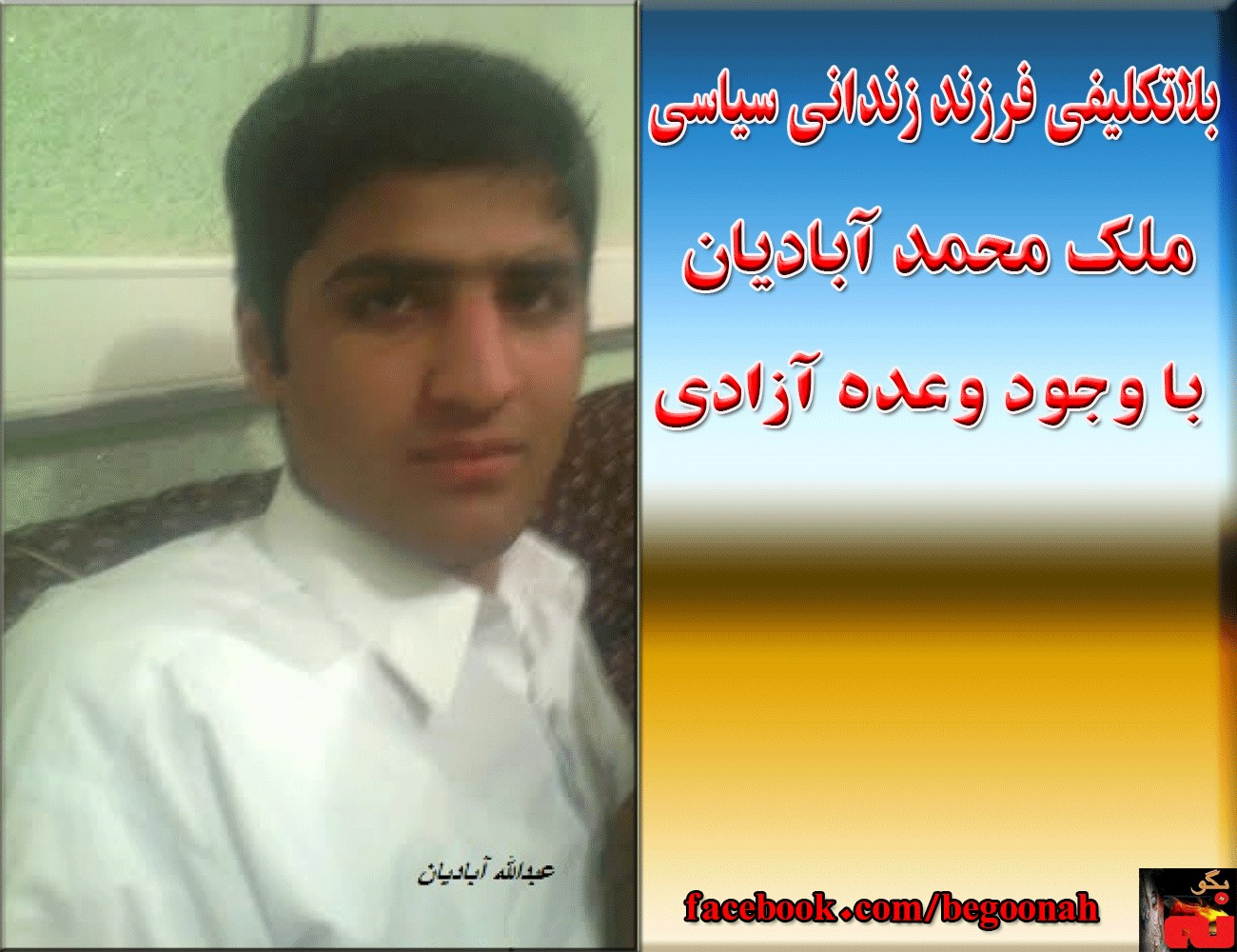 عبدالله آبادیان فرزند کوچک ملک محمد آبادیان با گذشت سه سال در بازداشتگاه اداره اطلاعات رژیم آخوندی و زندان مرکزی زاهدان و با وجود قول آزادی همچنان بلاتکلیف است.
