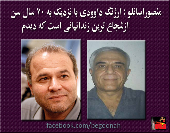 ارژنگ داوودی با نزدیک به هفتاد سال سن از شجاع ترین زندانیانی است که دیدم . او فقط با نوشتن مطالب و طرح موضوعات نظرات عمیق خود را نسبت به حکومت فاشیستی ولایت فقیه بیان می کند. او کتابی تحت عنوان وکیل جمهوری نوشته است که بیانگر نگاه او به روش حکومتی است . در زندان هم از عقایدش با دلاوری دفاع می کند . این ها می تواند دلیلی بر صدور حکم اعدام بر علیه انسانی صاحب تفکر باشد؟ !