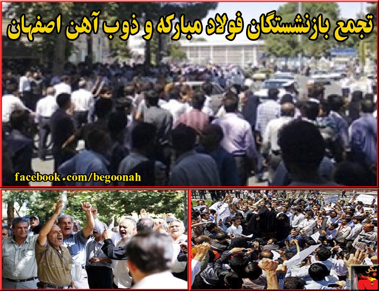 روز چهارشنبه ۲۵تیرماه در اصفهان از صبح زود بازنشستگان فولاد مبارکه و ذوب آهن اصفهان با زبان روزه مقابل استانداری اصفهان تجمع کردند و با نصب پلاکاردهایی و سر دادن شعارهایی اعتراض خود را بر بی کفایتی مدیریت صنعت در کشور و استان اعلام داشتند.