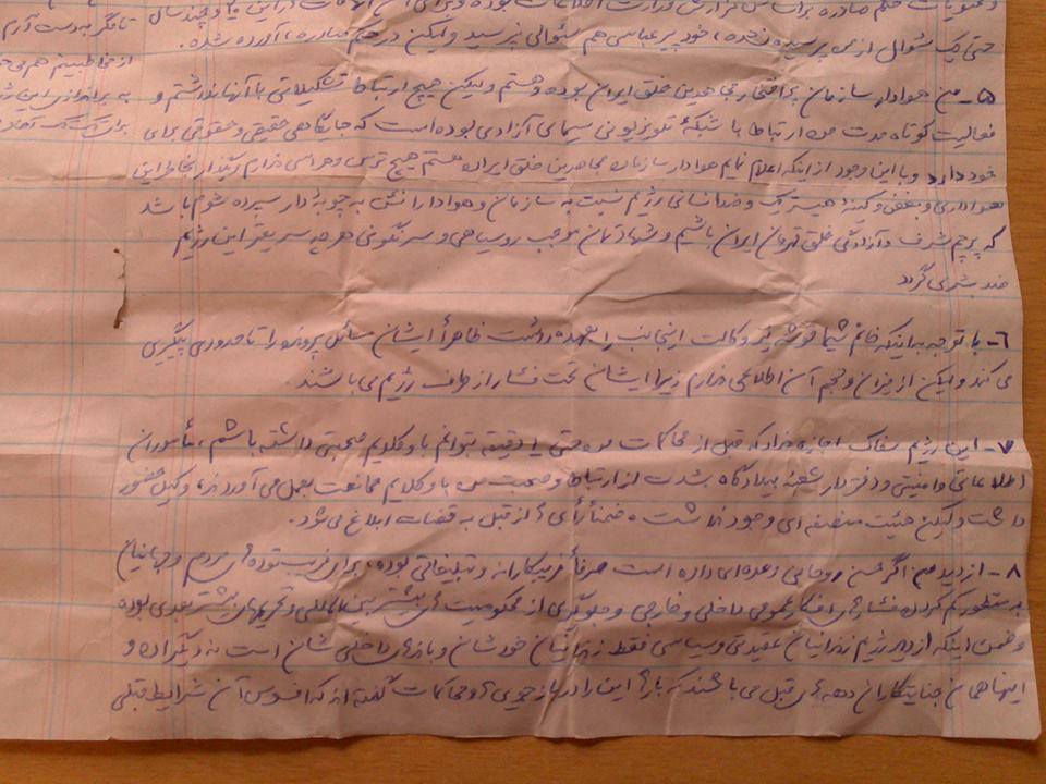 تقریبا همه همکاران معتقد به عدم انتشار نامه یا قسمتهایی از آن، به دلیل صراحت این زندانی در نوشتار و امکان استفاده از آن بر علیه وی بودند