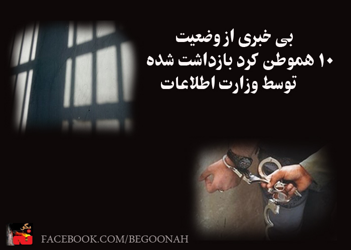 به گزارش آژانس خبررسانی کُردپا، هماکنون بیش از ١٠ هموطن کُرد که در مناطق مختلف استان آذربایجانغربی توسط مأموران مزدور اطلاعاتی رژیم دستگیر شدهاند در وضعیت نامعلومی بسر میبرند.