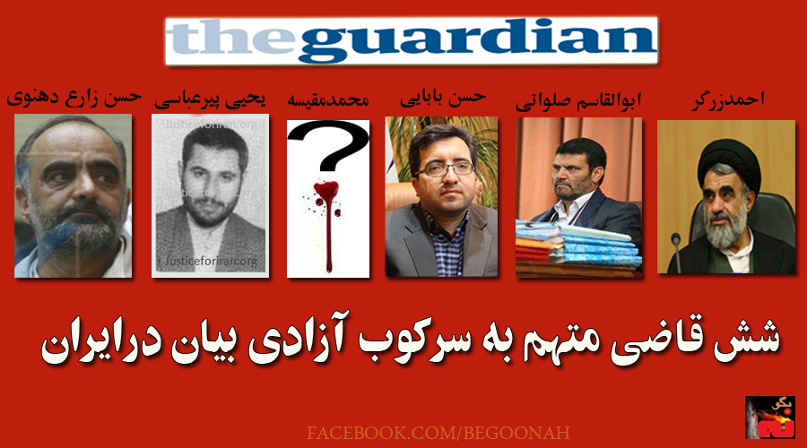 صدای آمریکا : روزنامه بریتانیایی گاردین در مقالهای با عنوان «شش قاضی متهم به نقش رهبری در سرکوب مردم ایران، خواستار آزادی بیان هستند» نوشت گروههای حقوق بشر میگویند که این قاضیها تحت نفوذ نیروهای امنیتی و اطلاعاتی، هدایت سرکوب روزنامهنگاران و فعالان سیاسی در ایران را به عهده گرفتند.