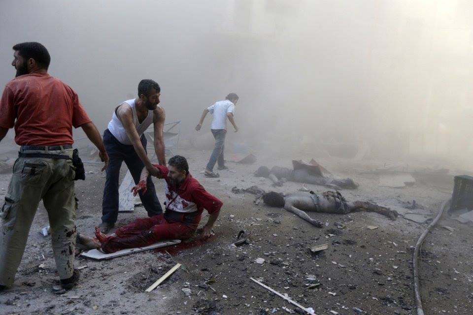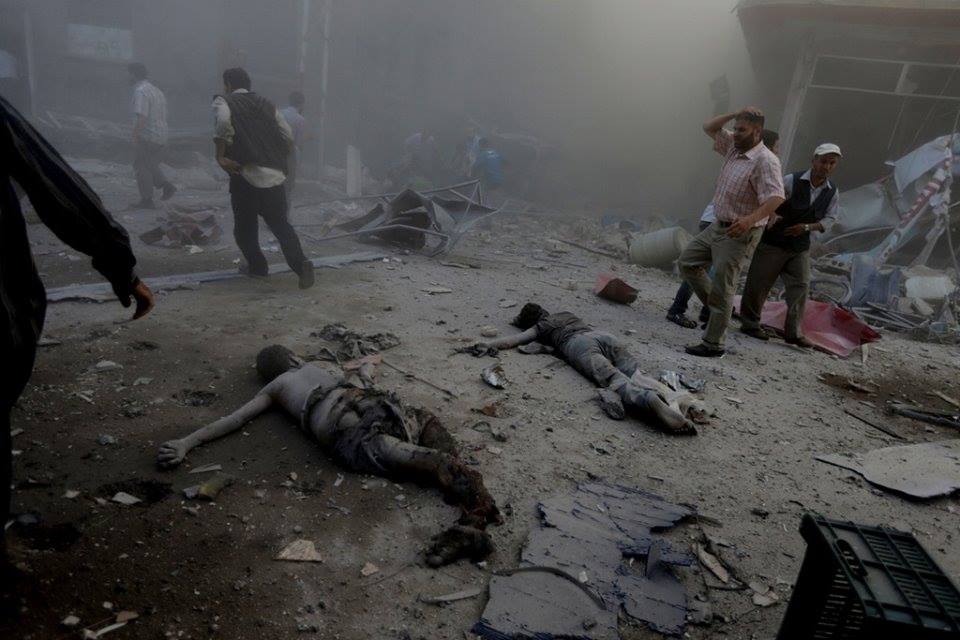یک موشک به این شهرک در حومه دمشق اصابت کرد. این منطقه غوطه در شرق پایتخت است. بر اساس گفته های مخالفان سوری، این (وضعیت) نتیجه بمباران هوایی یک جنگنده رژیم اسد بود. بسیاری از مردم هنگام بمباران در خیابانها به سر می بردند. آنها تلاش می کردند به مجروحان و کشته شدگان ناشی از یک حمله، که دقایقی پیش از این رخ داد، رسیدگی کنند. در مناطق دیگر دمشق بزرگ، فاجعه بیشتری بعد از یک حمله هوایی دیگر رخ داد. کسی که از این صحنه فیلمبرداری کرده، فریاد می زند: «مردم بدون سر، در خیابان افتاده ا ند، دنیا کجاست که ببیند. انسانیت کجا رفته است. ما را نجات دهید».