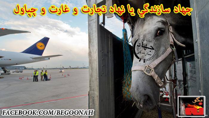 جهاد سازندگی( نهاد تجارت و غارت و چپاول ) ۶۵ اسب گرانقیمت را با عنوان «دام و طیور» وارد ایران کرد. در روزهای اخیر شرکت هواپیمایی لوفتهانزا با انتقال ۶۵ اسب اصیل گرانقیمت از فرانکفورت به تهران رکورد جدیدی در جابجایی اسب با هواپیما ثبت کرده است.