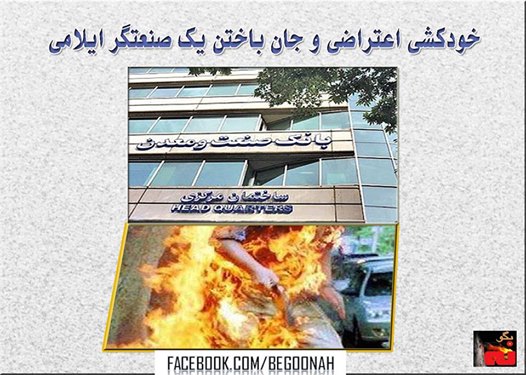 صنعتگر ایلامی که در اعتراض به فشارهای طاقت فرسای رژیم آخوندی در مقابل بانک دست به خودسوزی زده بود جان باخت.