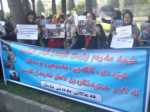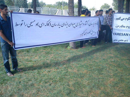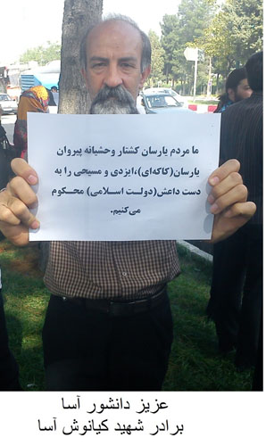 به گزارش مجذوبان نور صبح ۲۵ مرداد ۱۳۹۳ از حدود ساعت ۱۰ صبح جمعی از در استان کرمانشاه و برخی استانهای اطراف به دعوت «مجمع مشورتی فعالان مدنی یارسان» در اعتراض به جنایات داعش در حق کردهای ایزدی در برابر استانداری کرمانشاه تجمع و خواهان کمک به آنان شدند. اکثریت مطلق افراد از کردهای اهل حق بوده و برخی فعالان مدنی، وبرادر شهید کیانوش آسا نخبۀ کرد اهل حق، برخی فعالان مدنی و حقوق بشر کرمانشاه و… هم در جمع حضور داشتند.