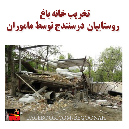 طی چند روز اخیر شماری از خانه باغ کشاورزان در اطراف جاده قدیمی مریوان ـ سنندج در حدفاصله روستای «سرزه» توسط اداره اماکن و پاسگاه آرنان تخریب گردیدند. یکی از باغداران مریوانی به خبرنگار کُردپا اعلام کرد: چند روز پیش نیروهای انتظامی در باغهای روستای آرندان درحال گشتزنی بودند و خانه باغ ساکنین روستا را با استفاده از لودر تخریب میکردند. این هموطن کُرد افزود: ماموران اماکن و پاسگاه آرنان به کشاورزان و باغداران اعلام کردند، «برای ساخت خانه باغ باید از بنیاد مسکن و اداره اماکن مجوز ساخت و ساز اخذ کنند». بنیاد مسکن برای دادن مجوز ساخت خانه باغ، برای هر متر مربع ١٥ هزار تومان وجه نقد از باغداران دریافت میکند. پیشتر نیز به سبب تغییر مسیر جادهی جدید مریوان ـ سنندج، شهروندان شهر شویشه و چتدین روستای کنار جاده قدیمی دچار خسارت مادی شده و مردم بومی منطقه نهادهای دولتی را به بیتوجهی به اصول راهسازی متهم کردند. همچنین کشاورزان مسیر جادهی مریوان به بازارچه باشماق به بهانهی تعریض جاده شاهد نابودی مزارع و باغات خود توسط ماشینآلات راهسازی شدند.