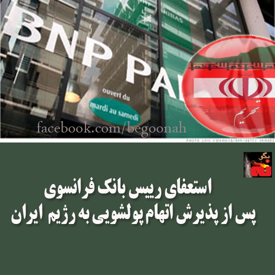 بانك ب ان پ فرانسه در ماه ژوين گذشته در مقابل دادگاه امريكا پذيرفت كه قوانين بين الملللي مربوط به تحريم هاي رژيم ايران را نقض كرده و حدود9ميليارد پول رژيمهاي ايران و سودان را در سالهاي 2004 تا2012 جابجا كرده است.