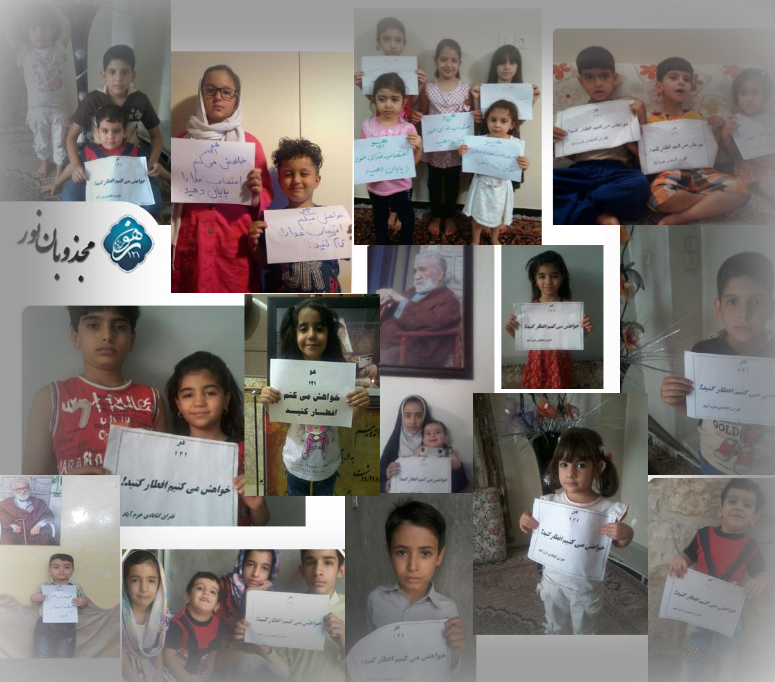 به گزارش مجذوبان نور این کودکان با پلاکاردهایی که بر آن نوشتهاند: «عموی عزیزم به اعتصاب غذای خود پایان دهید» مقابل دوربین ایستاده و عکس این اعلام همدردی کودکانه را در فضای مجازی منتشر کردهاند.
