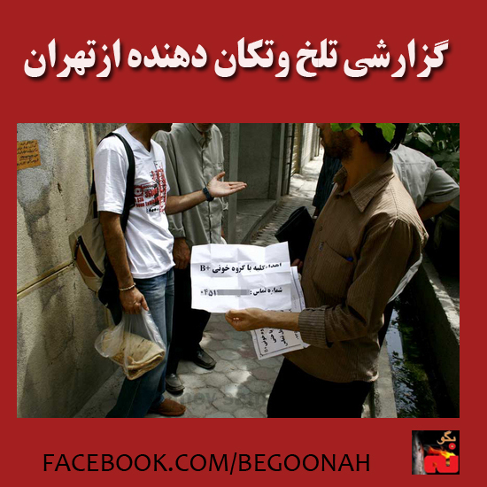 زني كه آگهياش را روي برچسبهاي بزرگ نوشته و به علمكهاي گاز اطراف مجتمع محك و بيمارستان هاشمينژاد چسبانده، ميگويد با گروه خوني AB منفي، كه كمياب است، رقمي كمتر از سي و پنج ميليون تومان نميپذيرد، اما مداركش كامل است.