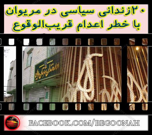 بنا به گزارشهای دریافتی 20تن از زندانیان سیاسی محکوم به اعدام در مریوان در استان کردستان در انتظار حکم اعدام بهسر میبرند.