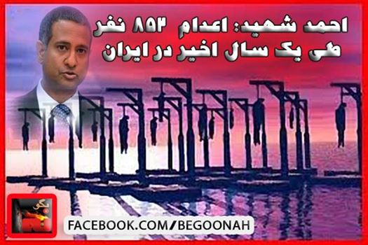 احمد شهید در گزارش خود وضعیت حقوق بشر در جمهوری اسلامی را همچنان باعث ایجاد نگرانی جدی خوانده و از اعدام ۸۵۲ نفر در عرض یک سال خبر داده است.