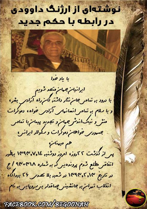 #ارژنگ_داوودی #حکم_جدید #زندان #ایران #بگونه