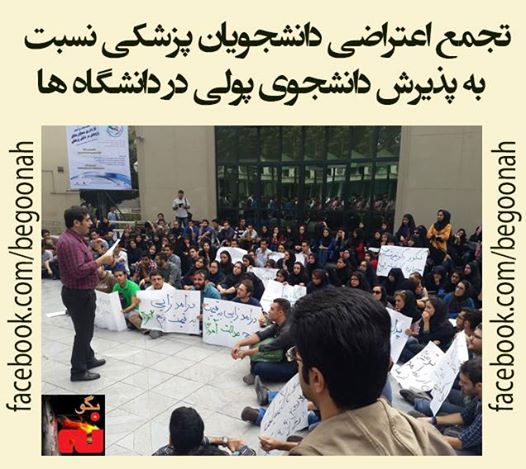 عده ای از دانشجویان دانشگاه علوم پزشکی تهران، چهارشنبه روز ۱۶ مهر در اعتراض به روند پذیرش دانشجوی شهریه پرداز در دانشگاه ها، در مقابل تالار ابن سینای دانشکده پزشکی تجمع کردند.
