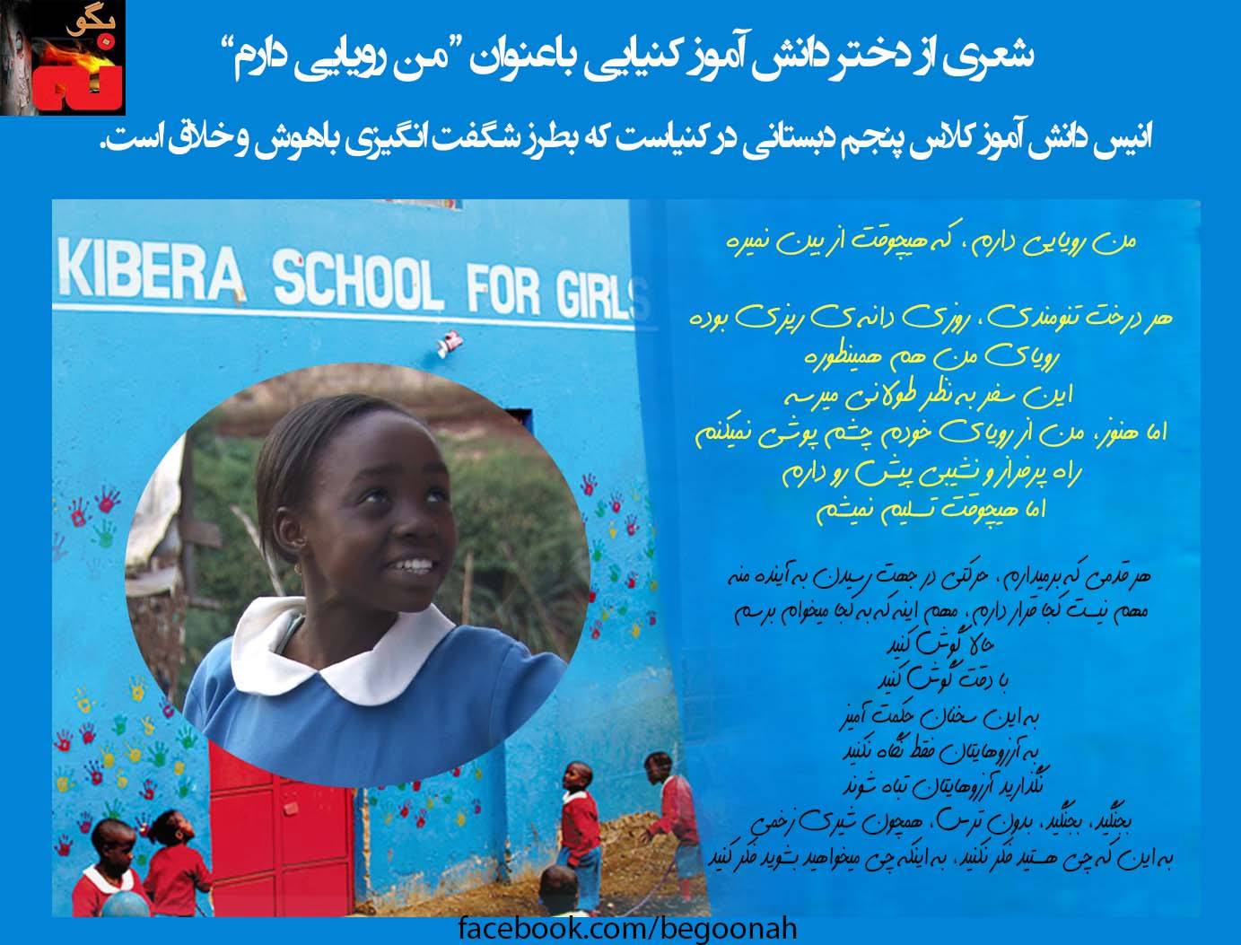 شعری از دختر دانش آموز کنیایی:من رویایی دارم، که هیچوقت از بین نمیره